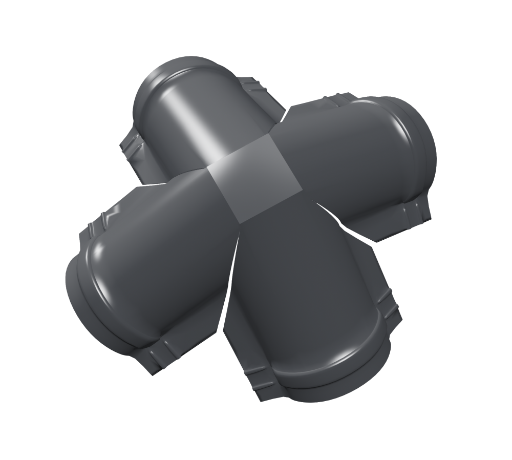 Четверники полукруглого конька применяются в качестве соединения полукруглых коньков на шатровых кровлях.
