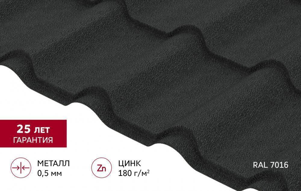 Металлочерепица Камея (Kamea) v01 0,5 Satin Matt TX RAL 7016 антрацитово-серый