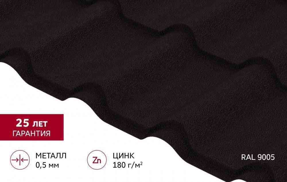 Металлочерепица Камея (Kamea) v01 0,5 Satin Matt TX RAL 9005 черный