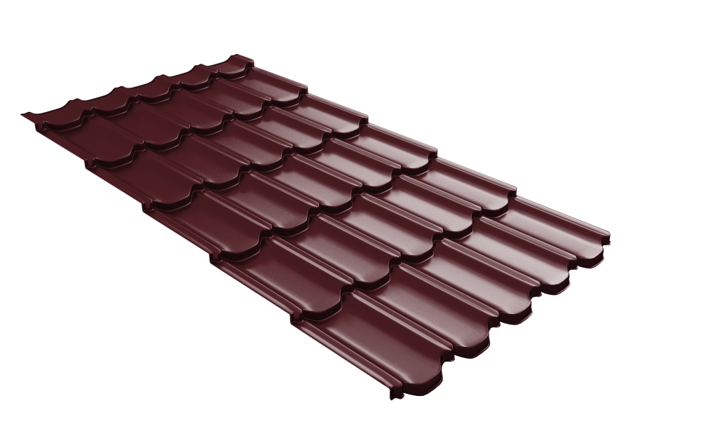 Металлочерепица Квинта плюс3D (Kvinta plus3D) 0,5 Satin Matt TX RAL 3005 красное вино
