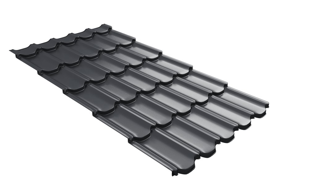 Металлочерепица Квинта плюс3D (Kvinta plus3D) 0,5 Velur X RAL 7024 мокрый асфальт